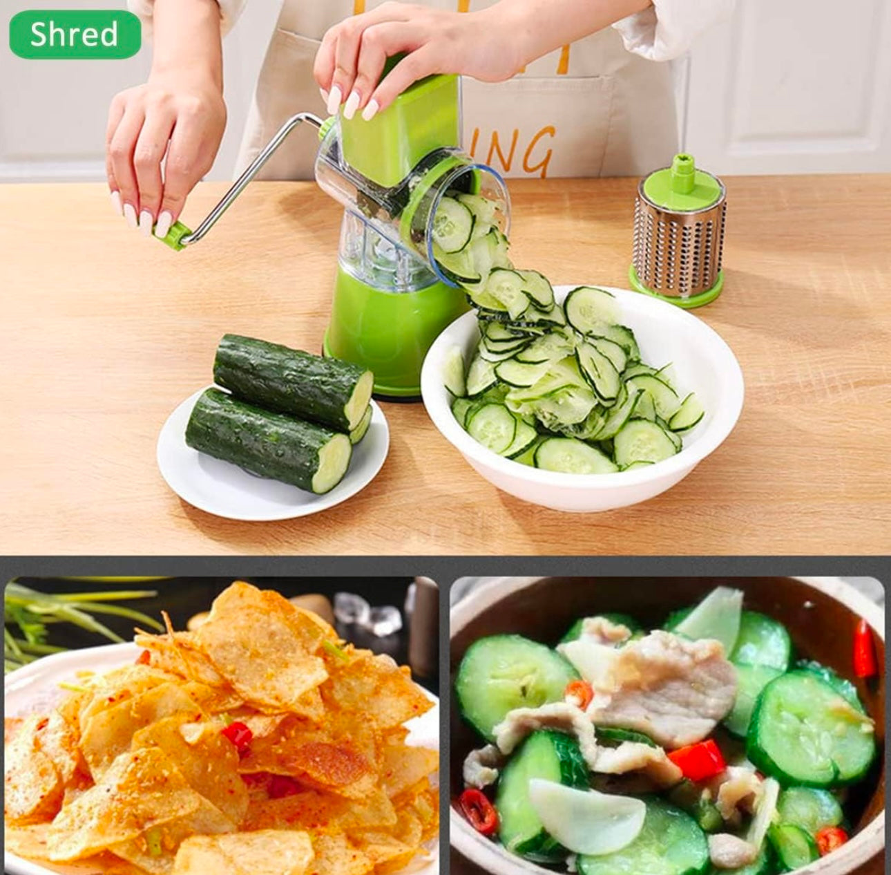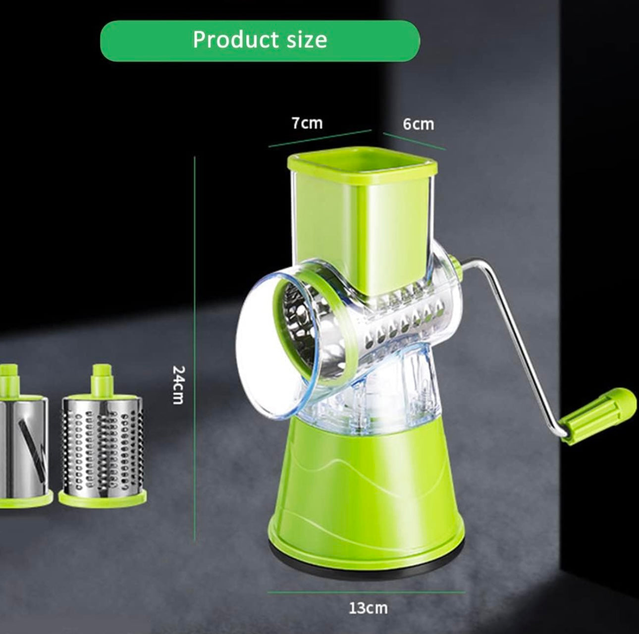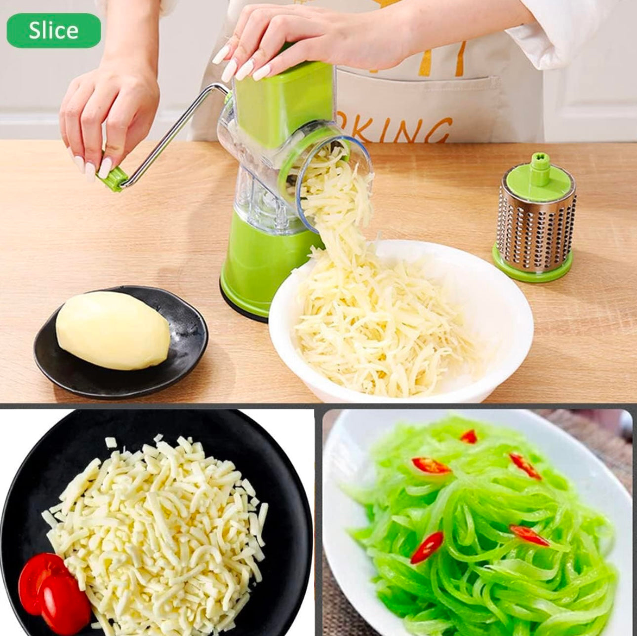-FIRME Y SEGURO🧑🍳 Base con ventosa ultra fuerte que mantiene el rallador firme y seguro en cualquier superficie en donde se utilice.-ELEMENTO ESCENCIAL PARA LA COCINA🧑🍳- Cortador de verduras de tipo tambor multifuncional, rallador rotativo, es la mejor herramienta de cocina. COMPRAR CONTRAENTREGA🔥 Oferta Válida por los Próximos 10 Minutos - UTENSILIO DE COCINA MULTIFUNCIONAL🍲 Contiene 3 tipos de cuchillas reemplazables, la hoja de corte es adecuada para cortar pepino, tomate, patata. La hoja de trituración plana es adecuada para rallar queso, nueces y galletas. La cuchilla trituradora gruesa puede triturar alimentos vegetales adecuados para hacer fideos vegetales. ¡UNA HERRAMIENTA DE COCINA IMPRESCINDIBLE PARA CADA HOGAR! COMPRAR CONTRAENTREGA🔥 Oferta Válida por los Próximos 10 Minutos -NO SE RESBALA✨ Esta trituradora de verduras rotativa tipo tambor incluye un botón tipo ventosa con fuerte succión para una mayor estabilidad en tu mesa o en la superficie que lo quieras usar.¡ Esto lo hace eficiente y fácil de operar! LIMPIEZA RÁPIDA Y SEGURA🍃 La estructura del rallador y el diseño de sus piezas adaptables e intercambiables, facilita su instalación y efectividad de cortes que también favorecen y ayudan a realizar una limpieza mas profunda y efectiva; dejando el rallador en buen estado y prologando su longevidad.